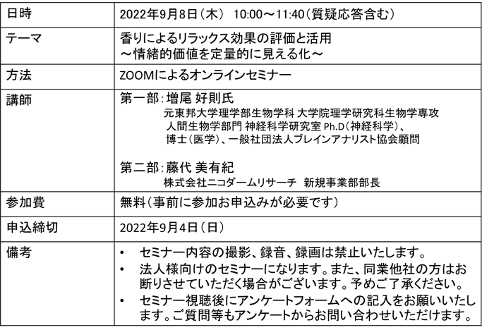 香りによるリラックス効果の評価と活用 ウェブセミナー
