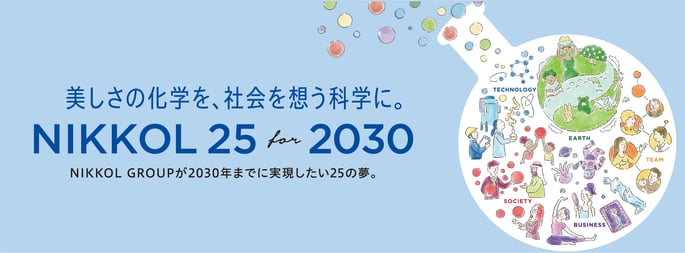 そして、わたしたちニッコールグループがビジョンとして掲げる「美しさの化学を、社会を想う科学に」というメッセージ。
