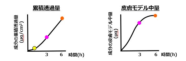 一定時間における成分の透過量、皮膚モデル中量で比較します。