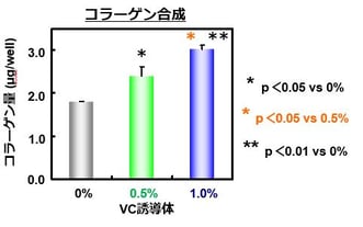 上記データからは、皮膚透過性は濃度依存的に皮膚を透過し、コラーゲン合成も濃度依存的に増加していることがわかります。