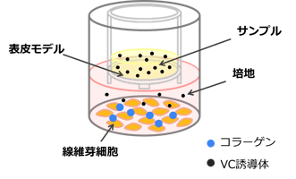 こちらでは三次元皮膚モデルと線維芽細胞を共培養させた試験例を示しております。