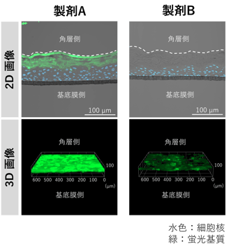 こちらの例では、製剤Aの方が、Bよりも浸透していることがわかります。